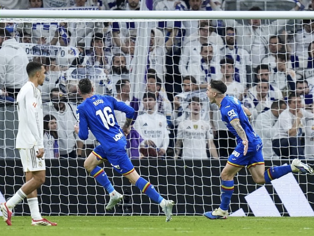 第39分钟,赫塔菲右路传中,吕迪格解围不远,萨特里亚诺在大禁区线上直接凌空爆射,皮球应声入网!皇马0-1落后。