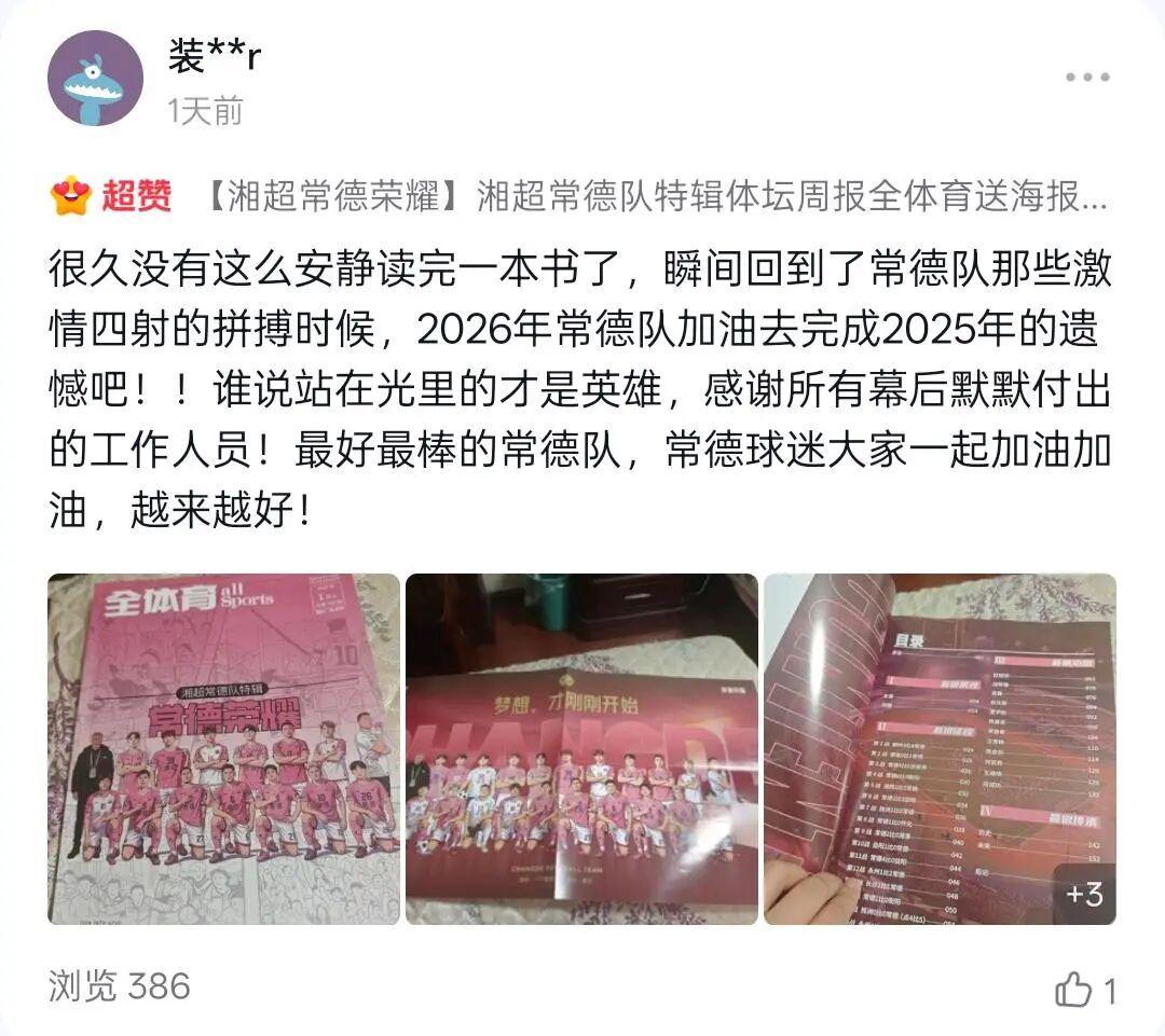 “人还没到家,队刊先到了,在外打拼的常德人,就用它弥补没能到现场看球的遗憾”